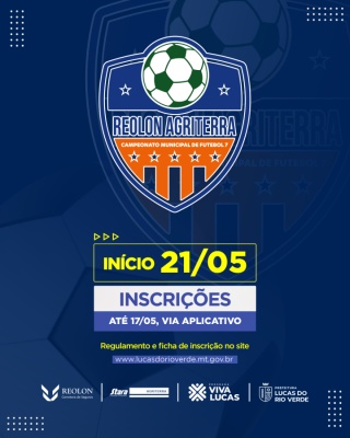A Secretaria de Esporte e Lazer de Lucas do Rio Verde abriu, nesta quarta-feira (27), as inscrições para a Copa Reolon - Agriterra de Futebol 7. A solicitação pode ser feita de maneira on-line até o dia 17 de maio. Para essa edição, serão mais de R$ 14 mil (em dinheiro) para premiar as equipes melhores colocadas.