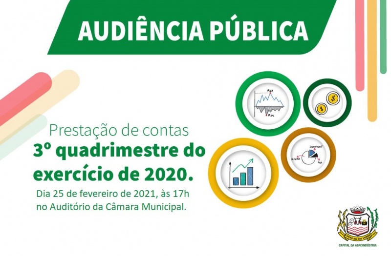 A audiência pública de prestação de contas acontece a cada quatro meses e tem como objetivo informar a população e dar mais transparência ao uso dos recursos públicos. A audiência também é a oportunidade de a população saber quanto foi arrecadado e em que setores foram investidos os recursos públicos.