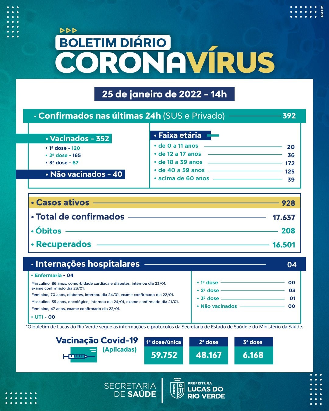 Em mais um Boletim Diário Coronavírus divulgado o pela Secretaria Municipal de Saúde de Lucas do Rio Verde-MT, na tarde desta terça-feira (25/01), a cidade registrou mais um aumento expressivo no número de casos.