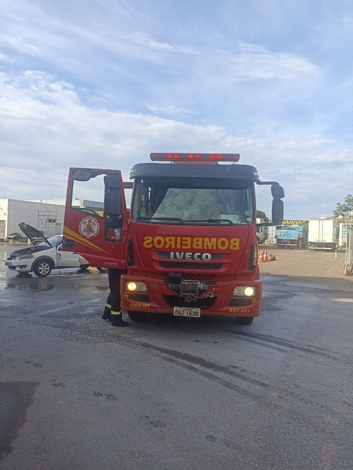Corpo de Bombeiros Militar, por meio da 13ª CIBM, atendeu um incêndio veicular em posto de combustível em Lucas do Rio Verde