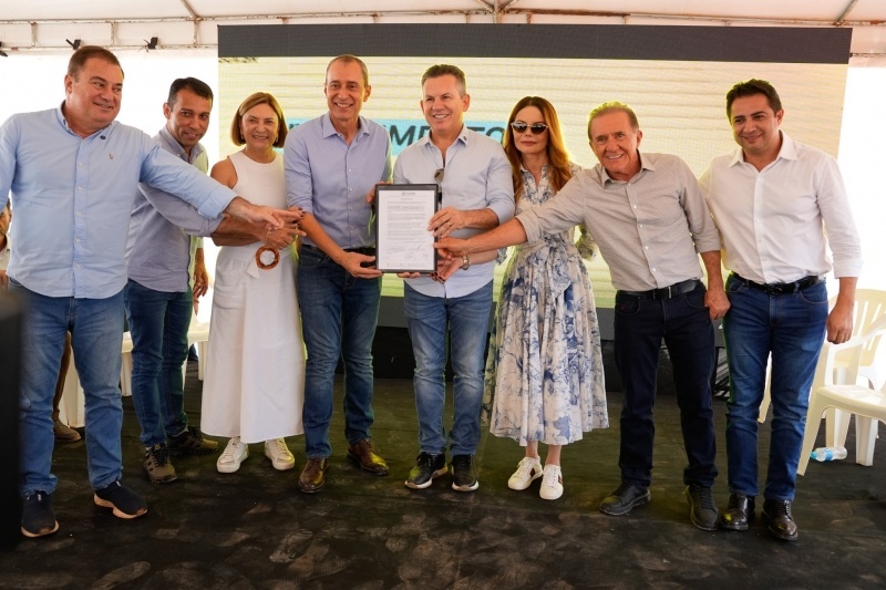 Durante a assinatura, o governador Mauro Mendes destacou o apoio do Estado aos municípios e o impacto do novo parque para a população.