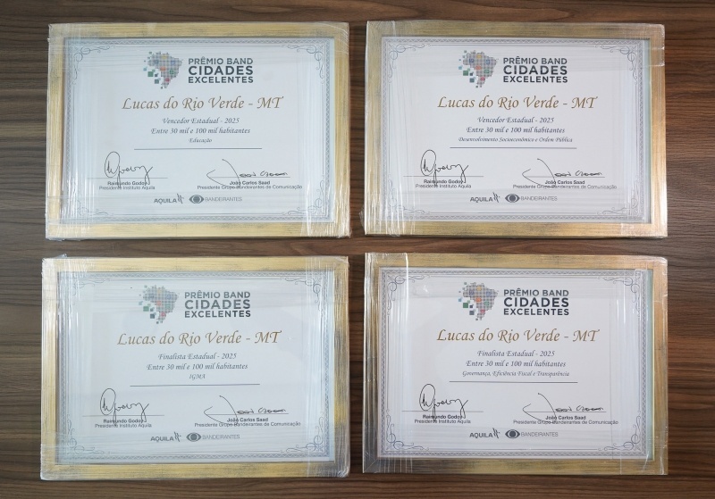 Lucas do Rio Verde mais uma vez foi destaque no Prêmio Band Cidades Excelentes 2025, conquistando quatro colocações na etapa estadual da premiação, na categoria de municípios com população entre 30 e 100 mil habitantes. O município conquistou o 1º lugar em Educação, 1º lugar em Desenvolvimento Socioeconômico e Ordem Pública, 3º lugar em Governança, Eficiência Fiscal e Transparência e o 2º lugar no Prêmio Principal – IGMA Geral, que considera o desempenho global da gestão municipal com base em seis pilares de avaliação.