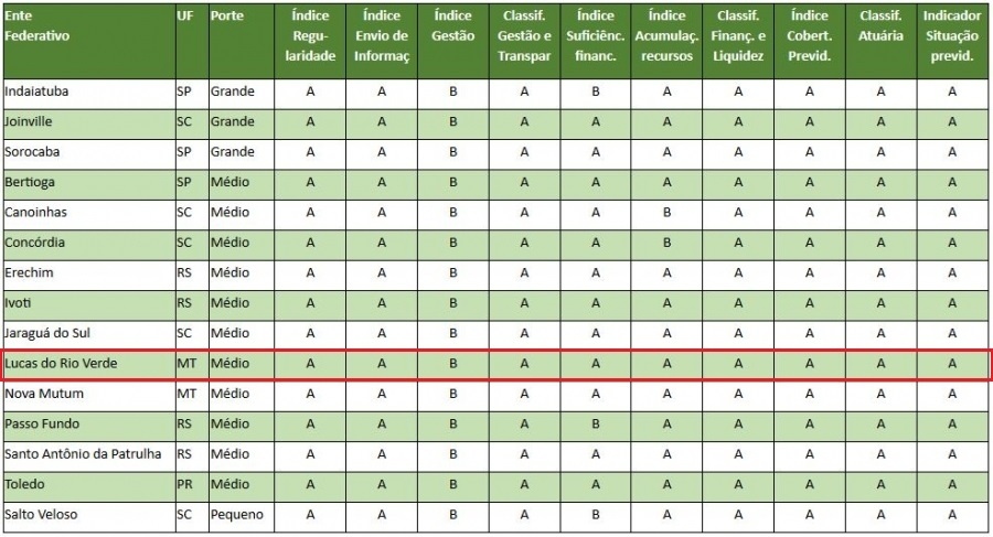 O Previlucas e o instituto de Nova Mutum são os únicos de Mato Grosso e da região Centro-Oeste com conceito “A” neste indicador. Além dos dois municípios mato-grossenses, apenas outras 13 cidades nos estados do Paraná, Santa Catarina, São Paulo e Rio Grande do Sul tiveram nota máxima na análise do MTP.