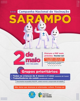Faltando menos de um mês para o fim das campanhas de vacinação contra gripe e sarampo, a Secretaria de Saúde de Lucas do Rio Verde alerta que a procura pelas doses está sendo pequena por parte dos grupos prioritários.