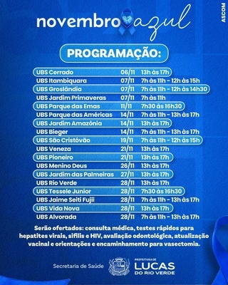 As Unidades Básicas de Saúde (UBSs) de Lucas do Rio Verde prepararam uma programação especial para o Novembro Azul, mês dedicado à conscientização sobre a saúde do homem.