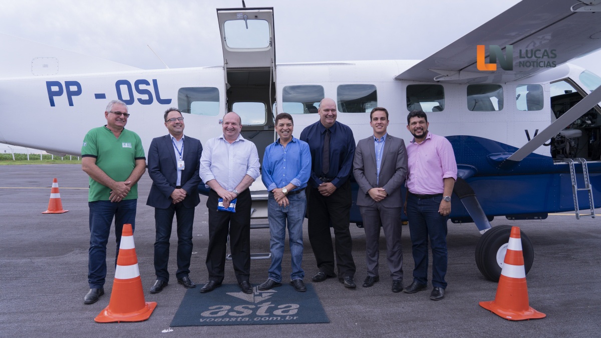 Lucas do Rio Verde já conta com voos regulares para Cuiabá. A companhia aérea Asta fez, nesta segunda-feira (09), o voo inaugural no Aeroporto Municipal Bom Futuro. A aeronave Grand Caravan, com capacidade para 9 passageiros, pousou e o ‘batismo’ foi feito por uma equipe do Corpo de Bombeiros.