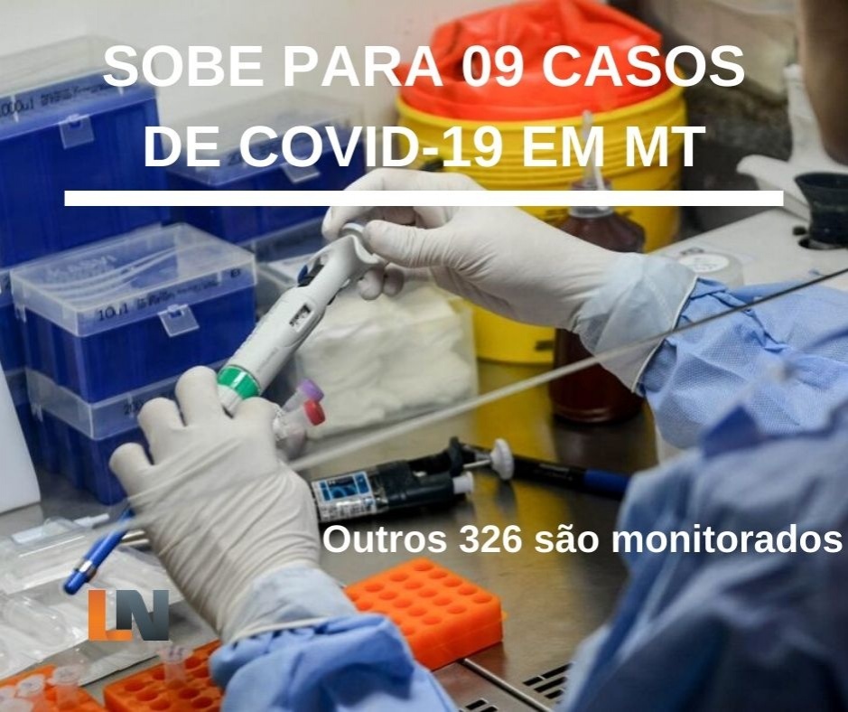 A Secretaria de Saúde Estadual (SES) confirmou, nesta quarta-feira (25), nove casos de coronavírus em Mato Grosso. Seis deles são em Cuiabá, dois em Várzea Grande, região metropolitana da capital, e um em Nova Monte Verde, a 920 km de Cuiabá.