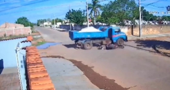 (VÍDEO) Jovem cai de moto e é esmagado por caminhão