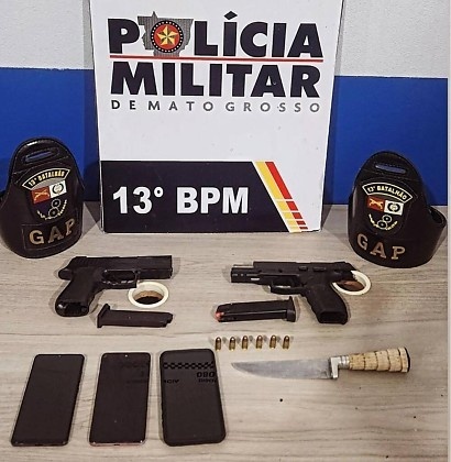 A PM já estava em alerta após receber informações sobre a possibilidade de roubos na modalidade “arrastão” na cidade. Por volta das 4h30, moradores denunciaram movimentação suspeita no imóvel, o que levou as equipes ao local.
