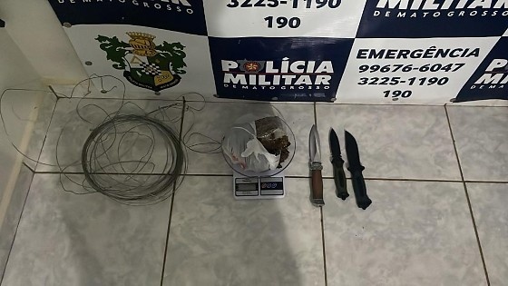 Durante buscas na residência, os policiais apreenderam diversos aparelhos celulares, uma barra de substância análoga à maconha, porções de droga, três facas e pedaços de arame utilizados para amarrar as vítimas. Parte do material foi encontrada escondida no telhado do imóvel.