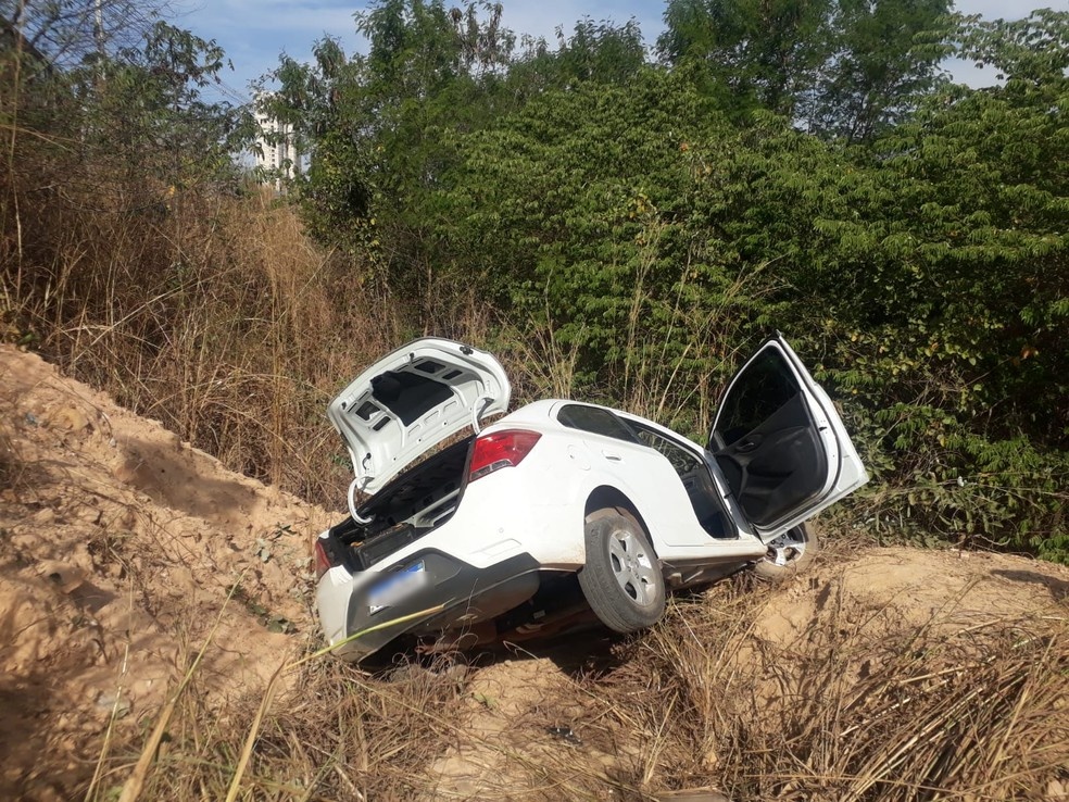 Motorista é feito refém durante roubo de carro e ladrões capotam veículo na fuga