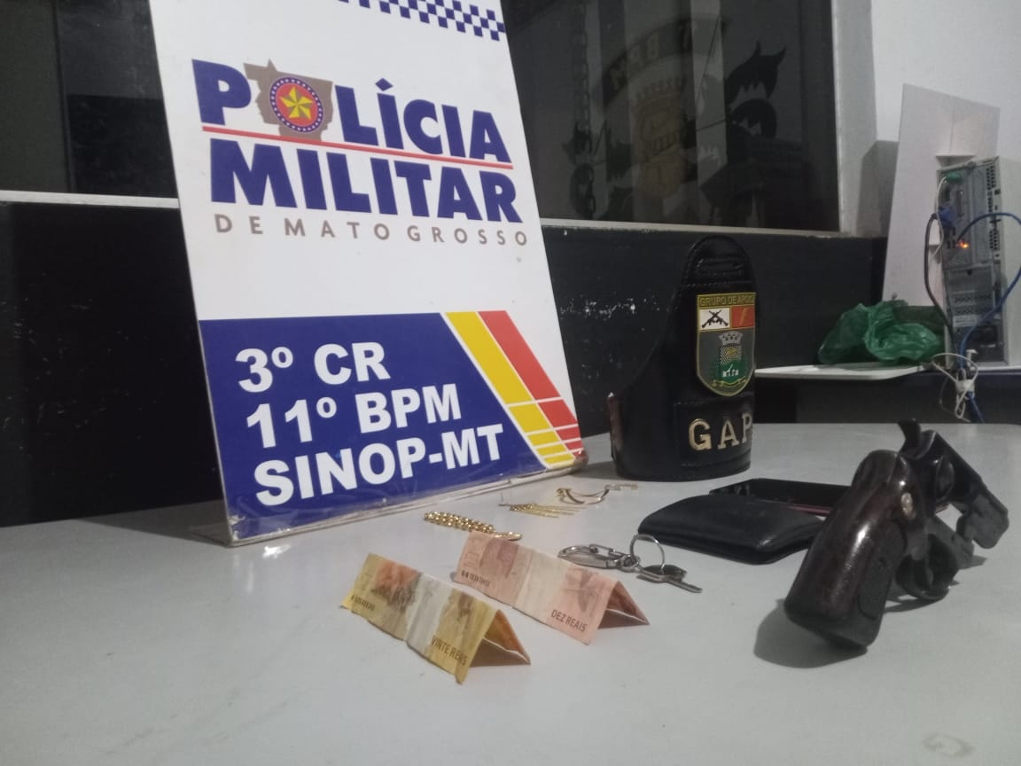 Um homem foi preso no interior de uma boate, em Sinop-MT, por estar armado com um revólver Taurus calibre 38.
