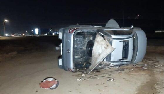 Consta no registro de ocorrência que o motorista seguia pela rodovia quando atingiu uma sarjeta e a picape capotou.