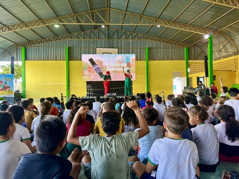 Entre risadas e músicas envolventes, o aprendizado ganhou ritmo na Escola Municipal Caminho para o Futuro, em Lucas do Rio Verde, durante o projeto cultural “Sinal Verde para a Alegria”, nesta quinta-feira (6). O espetáculo, apresentado pelos humoristas Tchó e Béppi promoveu a conscientização dos alunos sobre os cuidados necessários para garantir a segurança no trânsito.