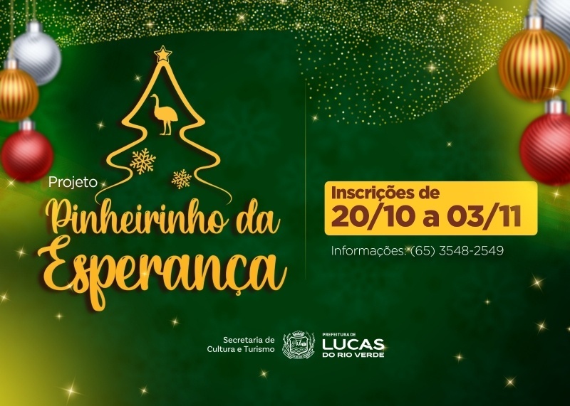 A Prefeitura de Lucas do Rio Verde, por meio da Secretaria Municipal de Cultura e Turismo (SMCT), lançou o Edital nº 008/2025 – “Pinheirinho da Esperança”, que vai selecionar sete empresas locais para decorar árvores natalinas que serão instaladas ao longo da Avenida Mato Grosso.