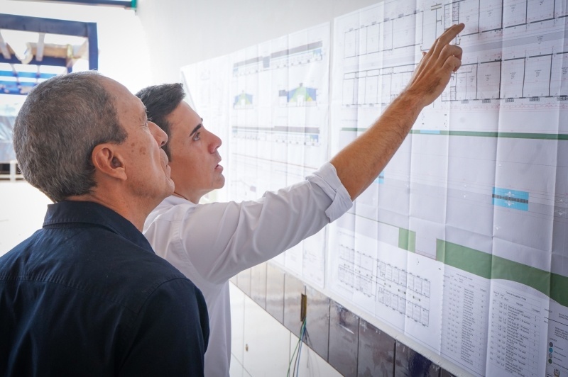 A comitiva iniciou a visita pela ampliação da Escola Municipal São Cristóvão, uma obra executada em regime de cooperação entre Estado e Município e que atende estudantes das redes muncipal e estadual. Em seguida, visitou a construção da Escola Estadual Vida Nova, que está na reta final das obras e deve ser entregue em breve.