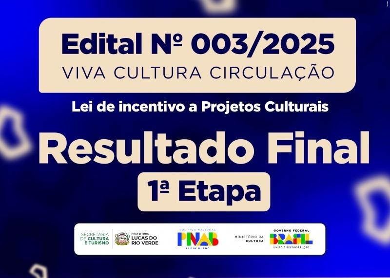 A Prefeitura de Lucas do Rio Verde, por meio da Secretaria de Cultura e Turismo, divulgou nesta terça-feira (6) o resultado final da primeira etapa dos projetos inscritos no Edital Cultural 003/2025. Ao todo, 30 propostas foram deferidas e avançam para a próxima fase do processo seletivo.