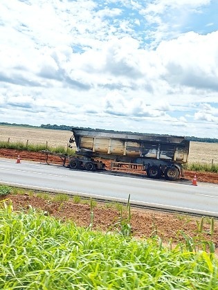 Uma carreta pegou fogo na manhã de hoje (14), no km 626 da BR-163, no município de Nova Mutum (a 242 km de Cuiabá), em Mato Grosso. As chamas atingiram o segundo vagão de uma Scania R 5640.