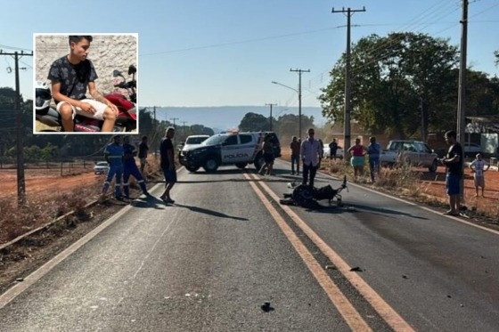 Kaique Borges de Souza, de 19 anos, morreu após bater a motocicleta que pilotava em uma caminhonete, na manhã desse sábado (23), na MT-240, em Arenápolis (a 258 km de Cuiabá). Com o impacto da batida, a moto pegou fogo. O motorista da caminhonete fugiu.