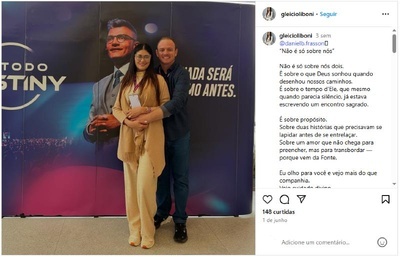 “E eu sou imensamente grata. Grata por você existir. Grata por te ter. Grata a Deus, que não apenas une caminhos, mas alinha propósitos, cura feridas e prepara o amor verdadeiro com mãos de Pai”, afirma a postagem.