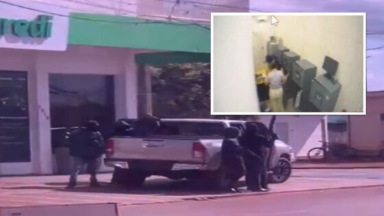 Câmeras de segurança registraram a ação dos integrantes do bando Novo Cangaço, que assaltaram uma agência do banco Sicredi na tarde de quinta-feira (31), na cidade de Brasnorte. (Vídeo no final da matéria)