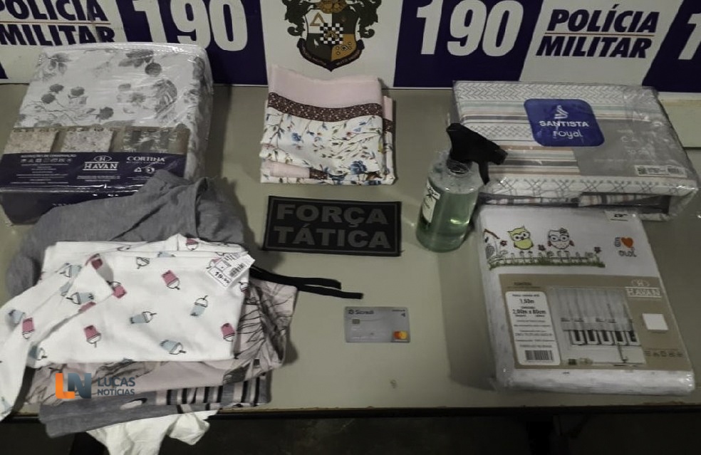 No local, os policiais encontraram o cartão de crédito e os produtos comprados, entre eles jogos de cama, mesa, banho e peças de roupa.
