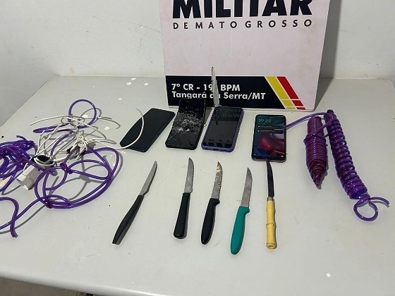 Policiais militares do 19º Batalhão resgataram, na noite desta segunda-feira (8.12), quatro pessoas mantidas reféns e apreenderam quatro menores por sequestro e cárcere privado, em Tangará da Serra (252 km de Cuiabá), em Mato Grosso. As equipes recolheram três facas e dois rolos de fios elétricos e de cadeiras, utilizados para ameaçar e conter as vítimas.