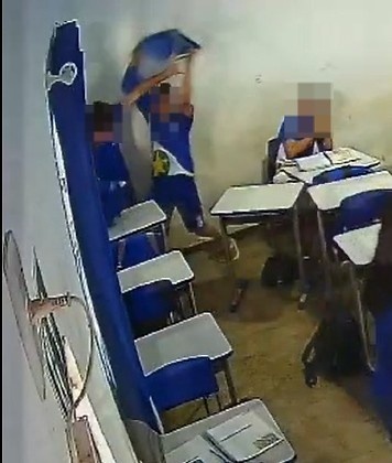 (VÍDEO) Adolescente espanca colega com socos e cadeiradas dentro de escola em MT